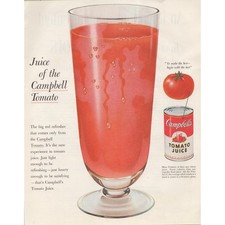 1955 Campbells Tomato Juice Vintage Print Ad Retro Kitchen Mid Century Wall Art