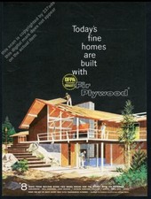 1960 MCM mid century modern house color art DFPA Fir Plywood vintage print ad