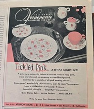 1956 Vernon Kilns Vernonware Tickled Pink mid century modern Dishes vintage ad