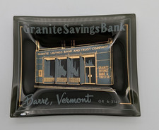 Mid Century Glass Ashtray Smoky Black 4" x 6" Granite Savings Bank, Barre, VT
