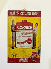 Vintage Old Colgate Tooth Powder Advertising Tin Sign Board