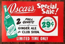 OSCAR's GINGER ALE SODA Bottle Advertising Paper SIGN Vintage Original