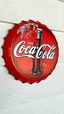 Coca-Cola Coke Bottle Cap shaped 13.5 In Metal 8x12 Drink Advertising Sign