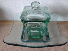 vintage coke bottle green recycled heavy glass apothecary/candy jar w/lid & dish