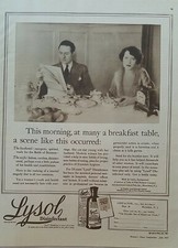 1922 Lysol disinfectant kills germs Apothecary bottle breakfast table vintage ad