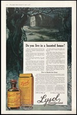 1918 LYSOL Disinfectant Haunted House Apothecary Bottle Vintage PRINT AD