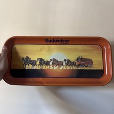 Vintage 1992 Orange Budweiser Rectangle Metal Serving Tray Clydesdales & Wagon