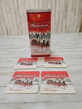 2007 10" Budweiser Beer Collectible Clydesdales Holiday Metal Tin (4) Coasters