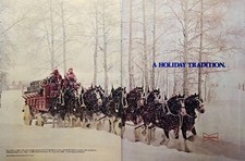 Vintage 2-Page Ad Budweiser Clydesdales Drawing Wagon In Snow - Dec 1980