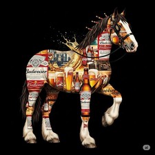 Budweiser - Clydesdales - Beer Girl - Painting Rare - Metal Sign 11 x 14