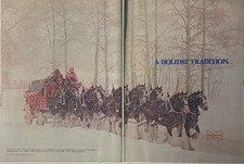 1980 Budweiser Clydesdale Horses PRINT AD Holiday Tradition - Beer Wagon VTG 80s