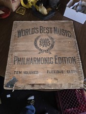 Vintage Dovetail Wood Advertising Box Philharmonic Music 13x10x11in