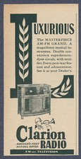 Clarion Masterpiece AM FM Grand Radio Vintage Magazine Ad 1946