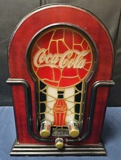 Coca Cola Vintage Radio on wooden stand with Coke Logo in Lights Tested-WORKS