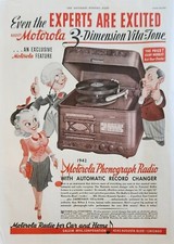 1941 Motorola Phonograph Radio Vintage Ad 3 dimension Vita Tons