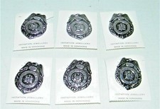 (6) Vintage 1970's Special Police Eagle Wings Badge Toy Tin Litho Pin Lapel Hat