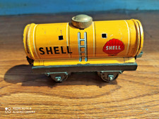 Rare vintage "SHELL" advertising tin toy train oil carrier of 60's made in Japan