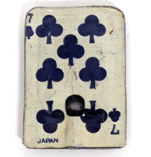Rare Vintage Cracker Jack Prize Premium Tin 7 of Clubs Playing Card Whistle Toy
