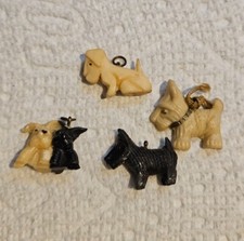 VTG Celluloid BLACK IVORY SCOTTIE DOGS Charm Cracker Jack Toy Prize LOT OF 4