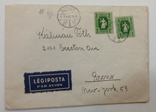 Hungary 2 Forint Stamp Antique Envelope Green stamped Circle seal postage Bronx