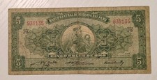 1954 Peru 5 Soles Vintage Bank Note Rare Antique Peruvian Currency
