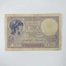 ANTIQUE BANK OF FRANCE 5 CINQ FRANCS BANQUE 1939 PAPER BANKNOTE NOTE