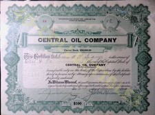 Central Oil Company Stock Certificate $100 Share Historic 1912 Antique
