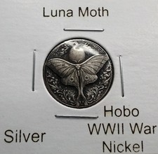 HOBO Luna Moth Made From A REAL WWII Silver War Nickel SIGNED