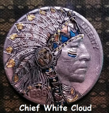Hobo Nickel hand carved original by J&M Tarantula buffalo as Chief White Cloud