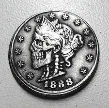 HOBO Lady Liberty Skull Skeleton 2 Made A From REAL Liberty Head V-Nickel SIGNED