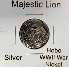 HOBO Majestic Lion Made From A REAL WWII Silver War Nickel SIGNED