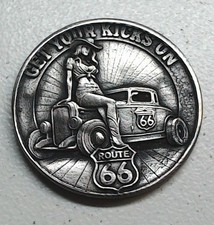 HOBO Get Your Kicks On Route 66 HOT ROD Made From A REAL Buffalo Nickel SIGNED