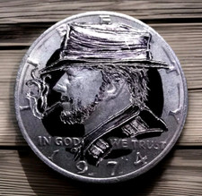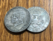 Hobo Nickel Style Kennedy Half Dollar Art Skull Coin, Dated 1974