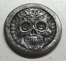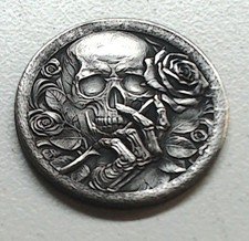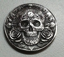 HOBO Sugar Skull With Roses Made From A Buffalo Nickel SIGNED