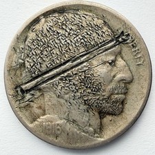 Original Carving 1916 Buffalo Nickel Hobo Nickel