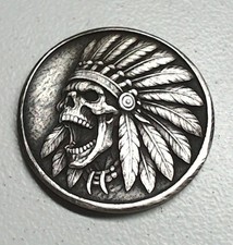 1929 Hand Engraved Hobo Buffalo Nickel Indian Skull Carving USA Coin -