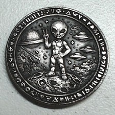 HOBO Alien Peace Sign Space Ships UFO Made From A REAL Buffalo Nickel SIGNED