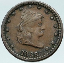 1863 United States CIVIL WAR PATRIOTIC Cent Token NAVY Coin LADY LIBERTY i87343