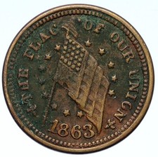 1863 United States CIVIL WAR PATRIOTIC Token FLAG Medal Not 1 Cent Coin i120275