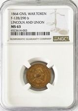1864 ABRAHAM LINCOLN UNION CIVIL WAR TOKEN NGC MINT STATE 63 F-128/290B
