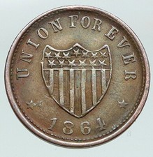 1864 United States CIVIL WAR PATRIOTIC Token UNION FOREVER Old Cent Coin i91424