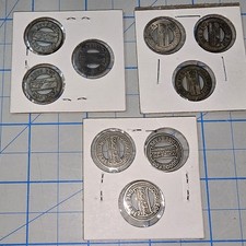 Lot Of 7 VTG - Antique Fare Tokens Transportation Bloomington Multi City Read