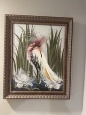 M.Devoe Mid Century Painting Birds Of Paradise On Board Egret Heron MCM