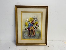 Vtg Mid Century M.L. Gibbons Still Life Watercolor Painting of Flowers in Vase