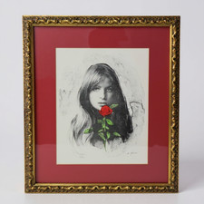 M. Maurice Lithograph "Girl with Rose" Mid-Century Signed & Numbered, LE 62/250