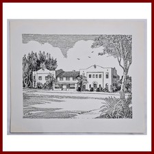 M E Elliot Print Mid Century Modern House Signed Vintage Landscape Architecture