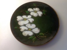 Vintage Mid Century Modern Hand Painted Enamel on Copper Dish Signed M. Ratcliff