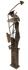 Mid Century Brutalist Sculpture Signed M'Curdy Metal On Wood Flower Read