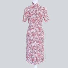 Vintage Mid Century Pink Embroidered Cheongsam Sheath Dress 60s Size M