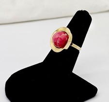 MID-CENTURY M & L 8K SOLID GOLD RHODOCHROSITE CABOCHON RING,5.25